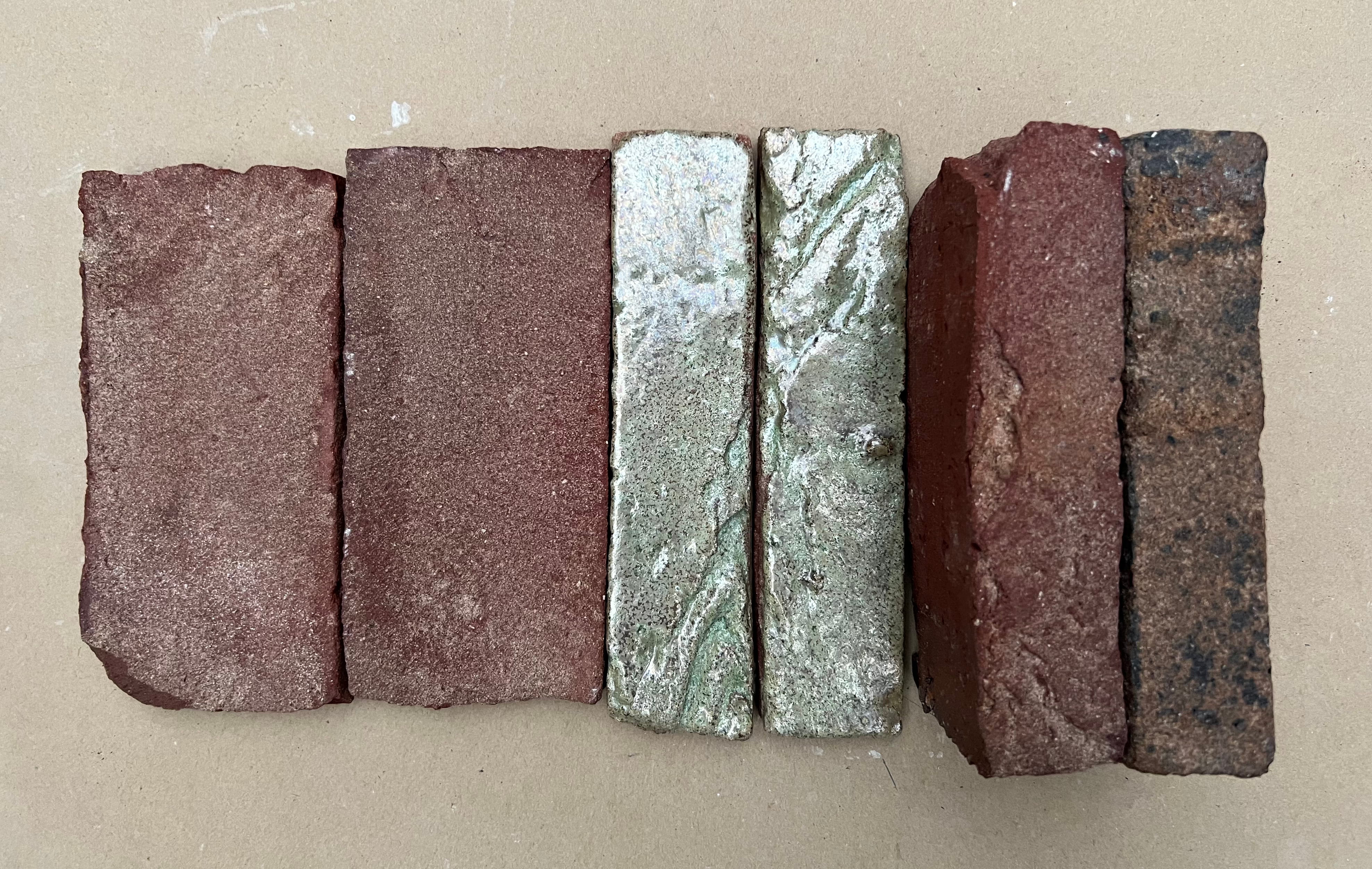 The glaze recipe contains harmful particulate matter (PM), extracted from the ambient air of heavy industry to improve working conditions. This addition enlivens the colour. The use of PM in the glaze arose because these glazes held an inexplicable attraction on the architect (Pelle Poiesz of HP Architects).
