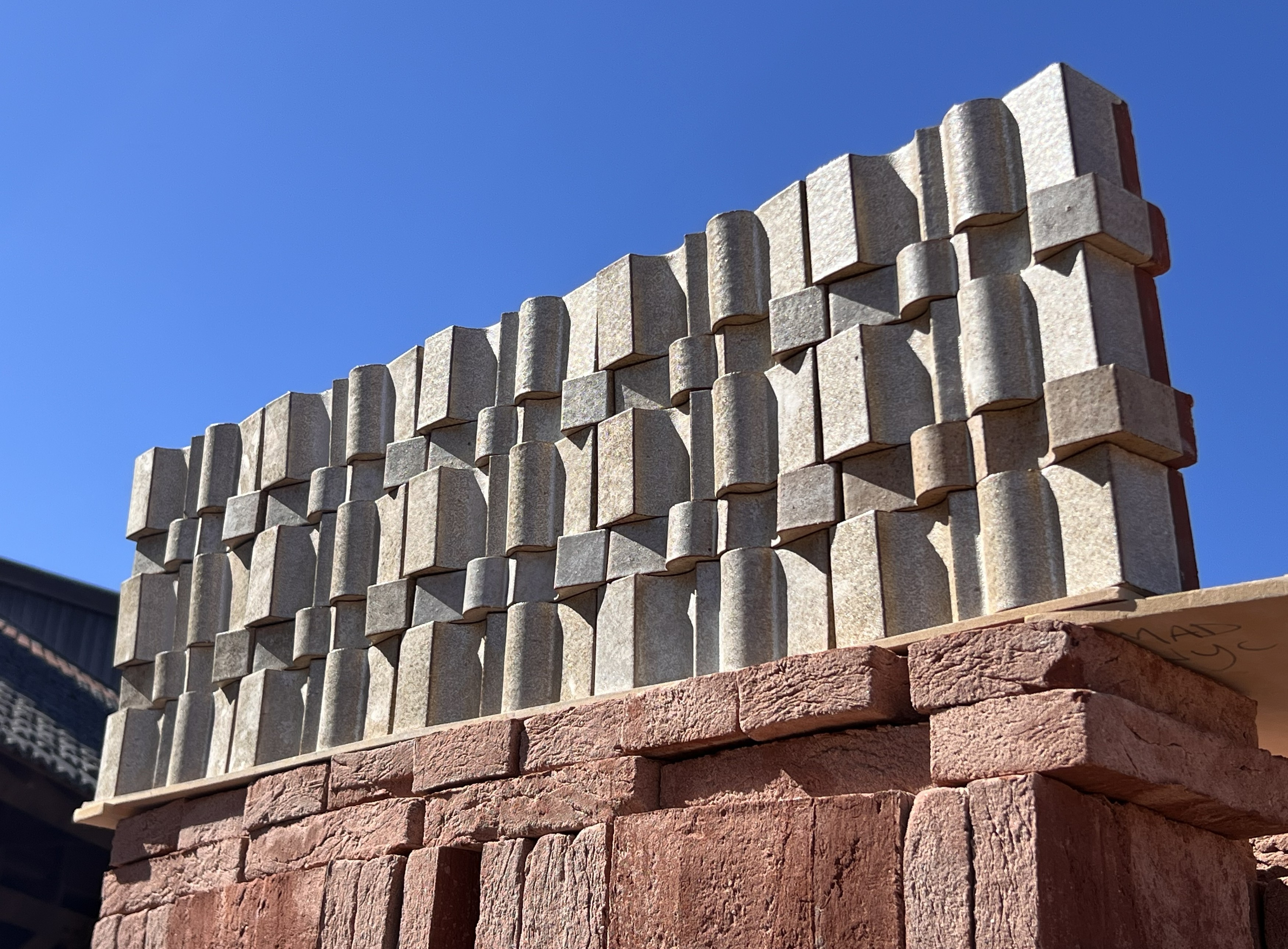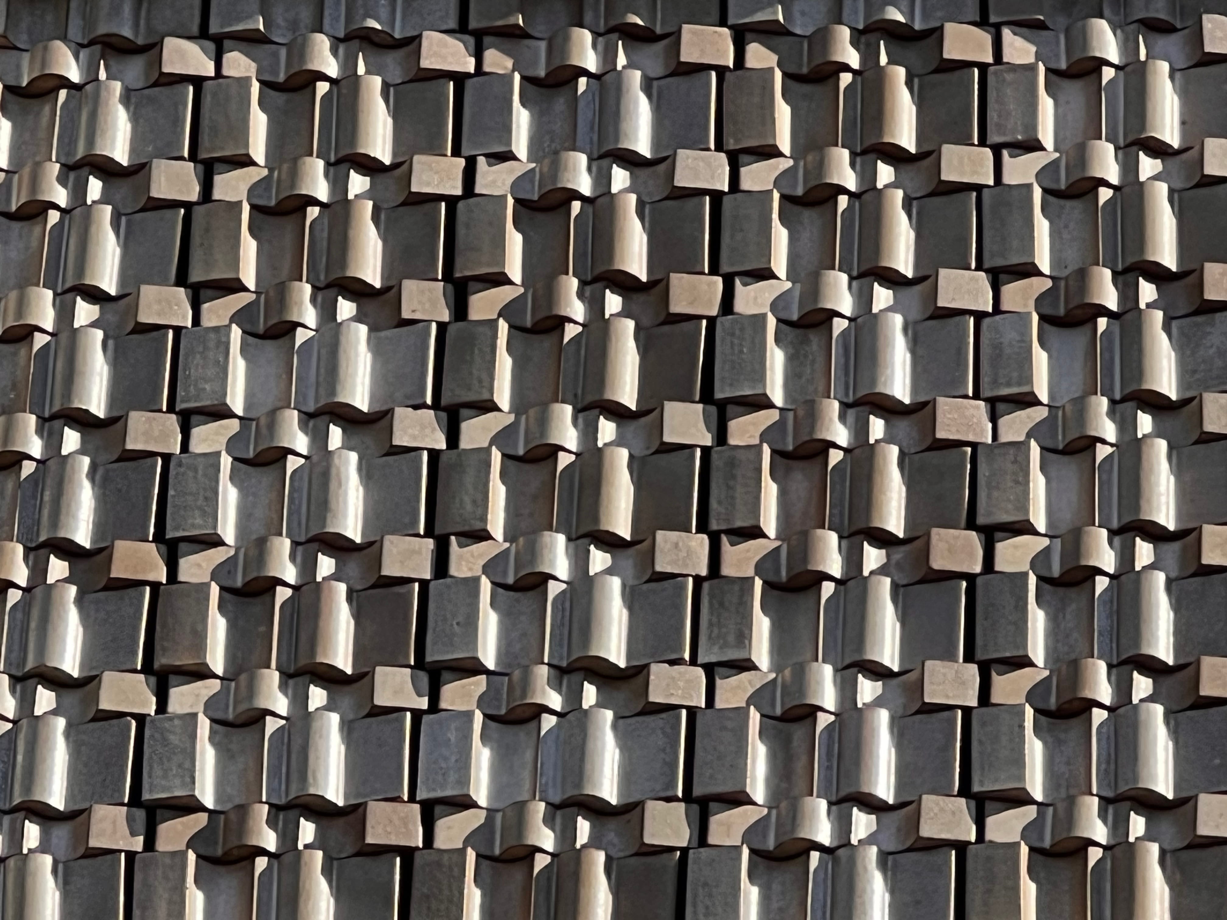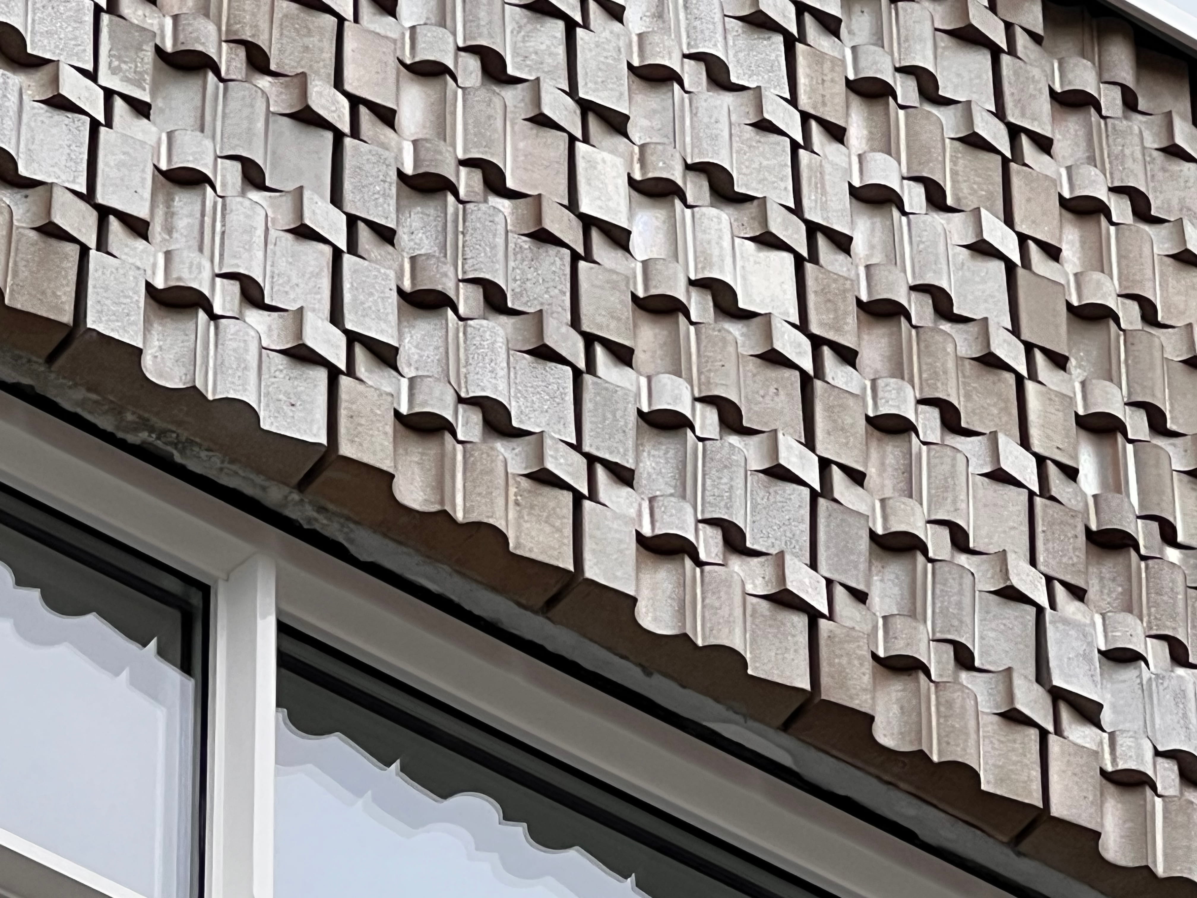 The combination of art and architecture revitalizes the conversation between artists and architects. The staggered stacking of relief bricks creates shifting views from different sightlines, resulting in a shifting perception: at one moment the brickwork dominates, and the parapet blends with the brickwork of the adjacent façades. At another moment, the light changes, shifting the emphasis to verticality, thus restoring the façade to its original ornamentation. This specially developed glaze recipe actively contributes to 2,000,201 m³ of purified air in heavy industry with the glazed surface, thereby improving the working environment. I prefer cohesion, so that the facade materials compliment and reinforce each another. I contacted Artisan Stucco in The Hague for a specially designed lime plaster, inspired by the characteristics of the glaze and also its light-reflecting properties.